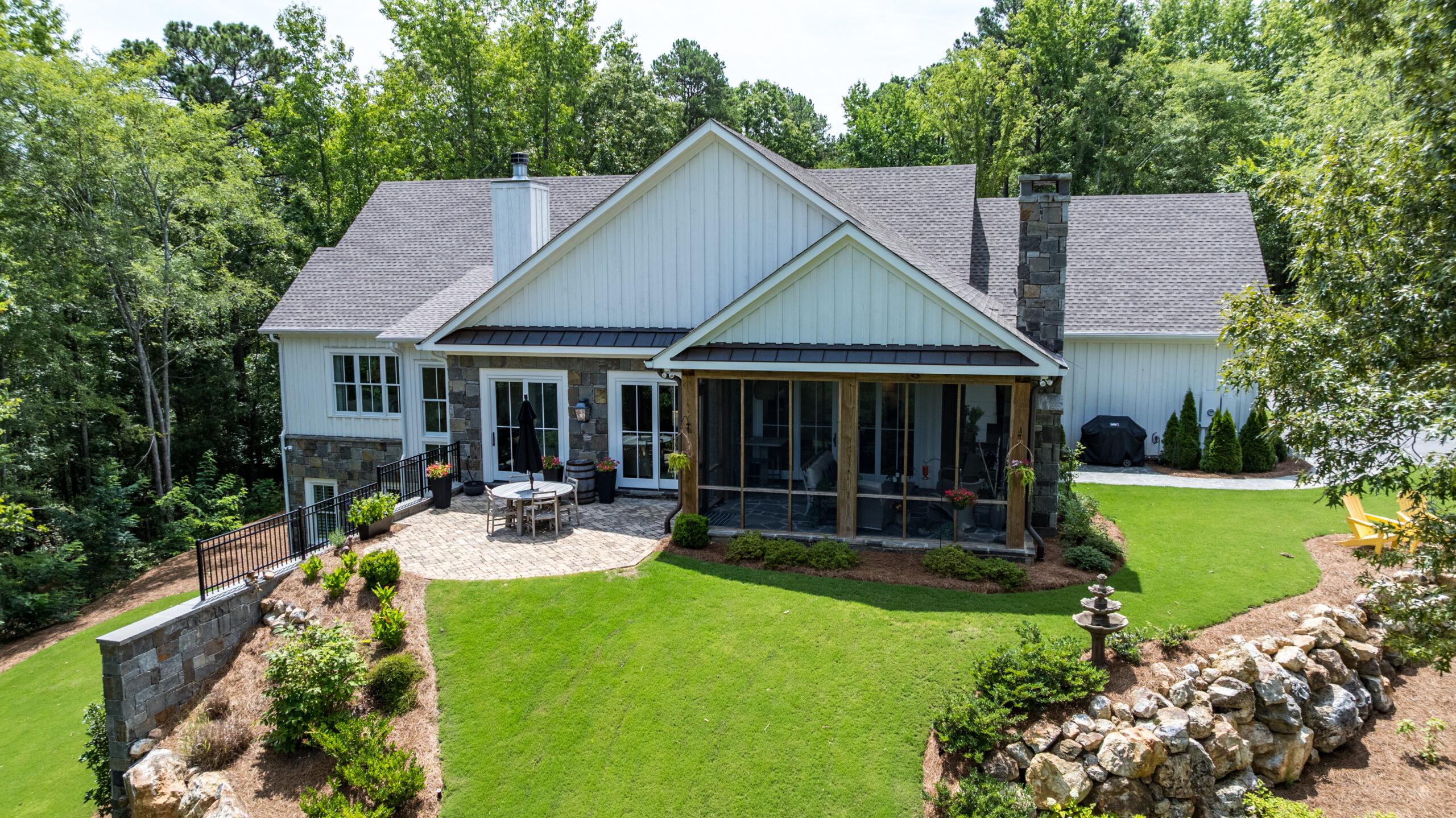The home itself was built with high-quality natural materials like thick natural stone and solid wood, including Marvin windows, spray foam installation, three HVAC units, two tankless water heaters, and a dehumidifier.