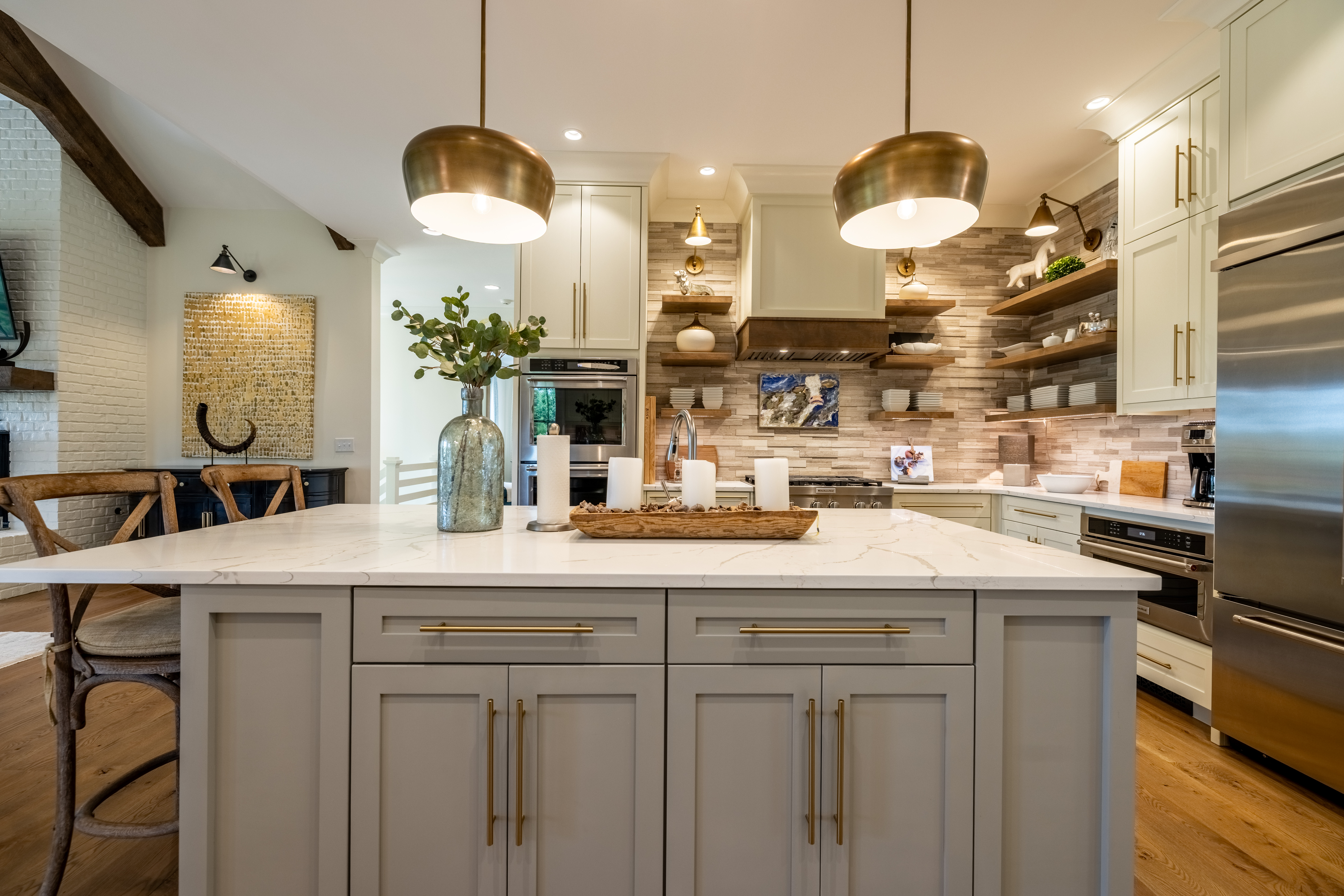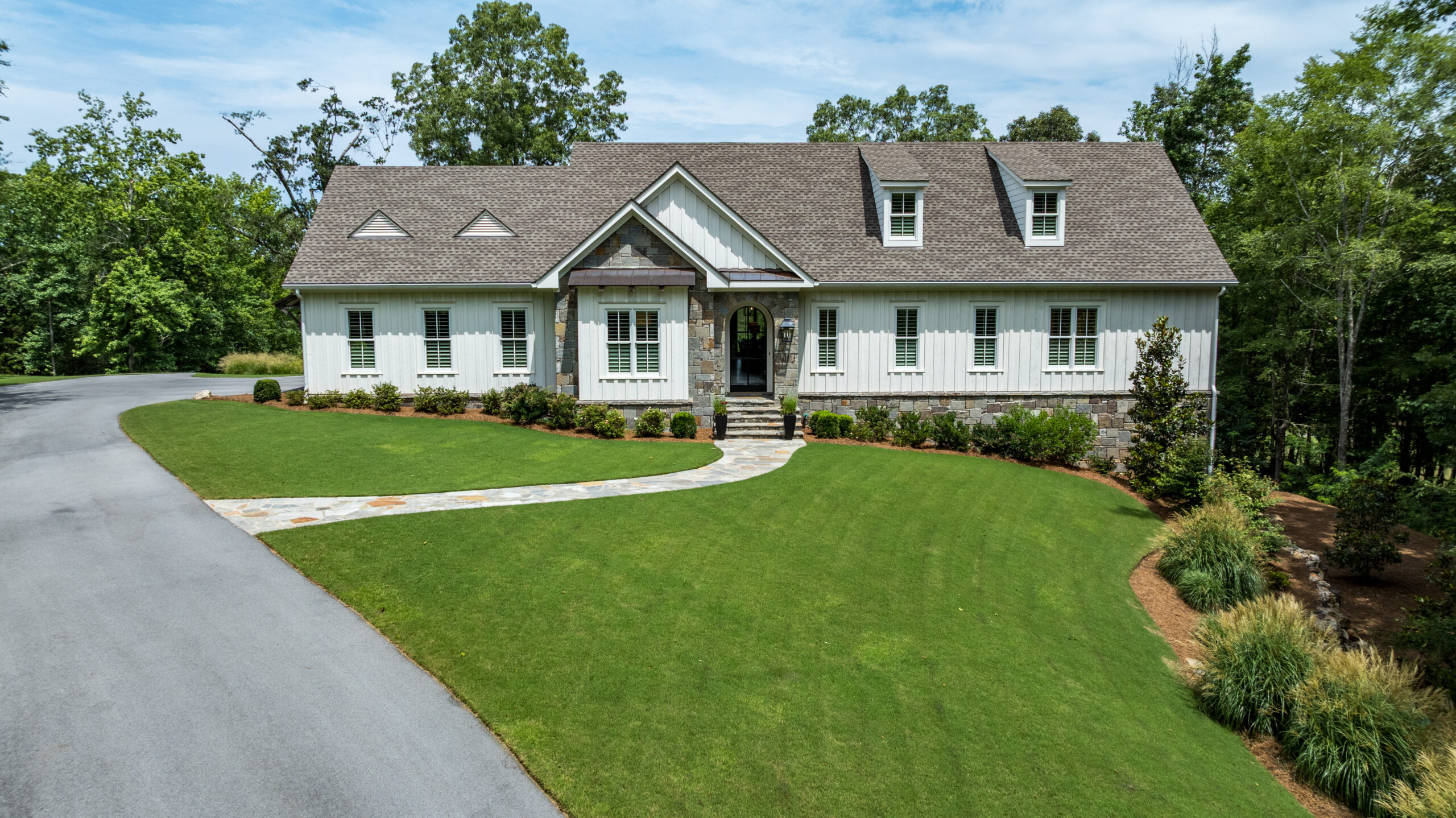 Built in 2021 by the highly respected Brooks Building Group, this custom-built home is all about quality and restraint. “It’s an understated, comfortable house where everything is done so well and nothing is over-the-top,” said Molly Steeves of Hardy Realty. From the custom iron-and-glass arched front door to the professionally landscaped grounds, every inch is thoughtfully curated.